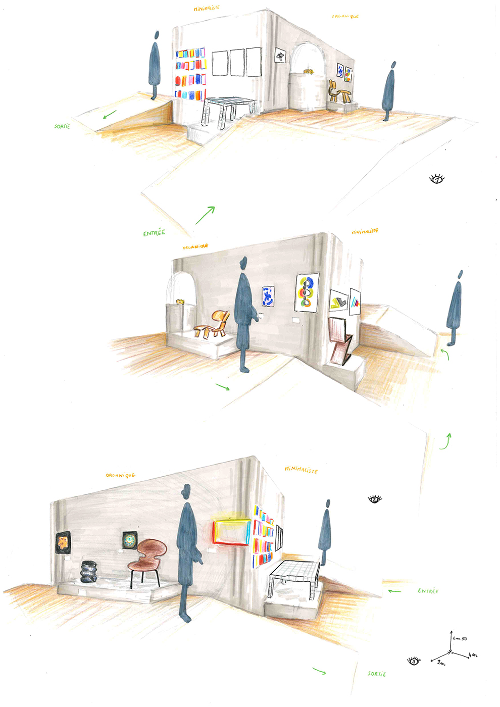 Sélection d'oeuvres pertinentes et représentatives des mouvements artistiques et disposition dans une scénographie.