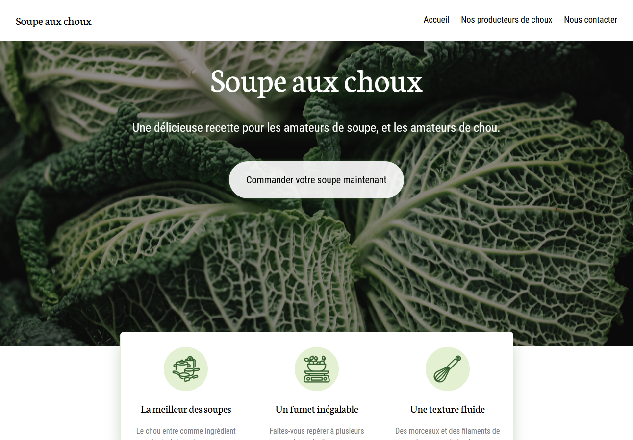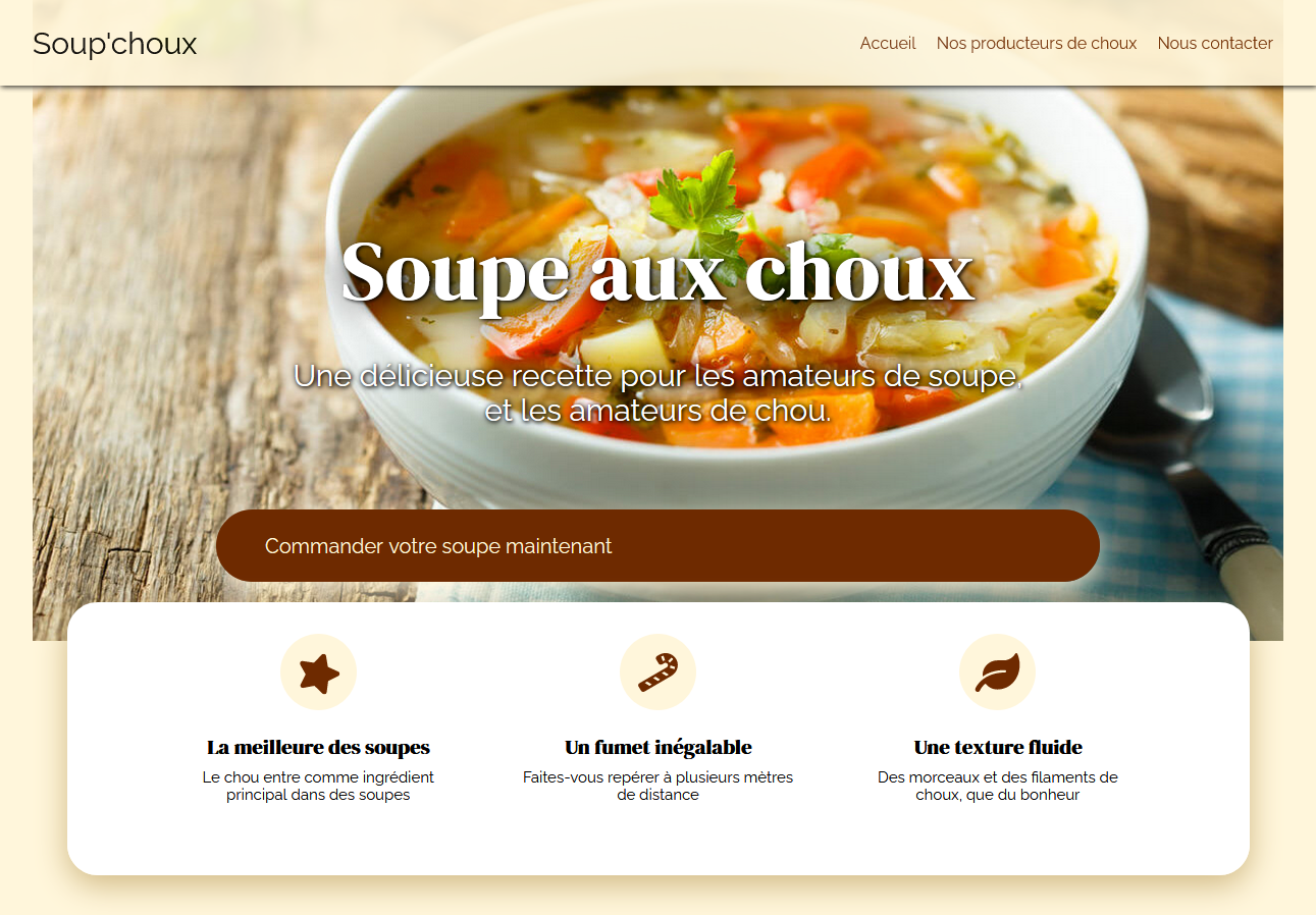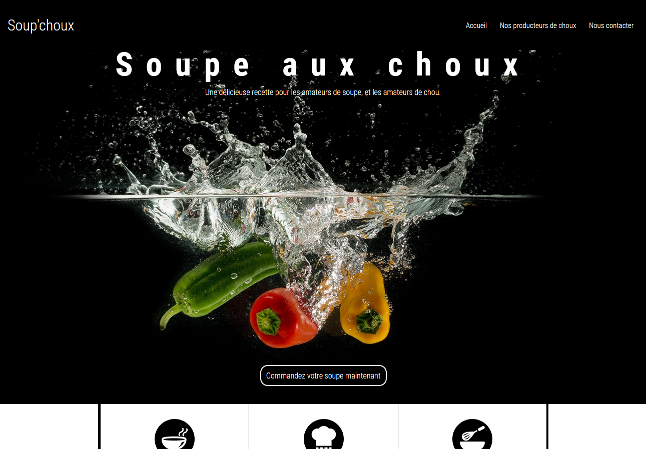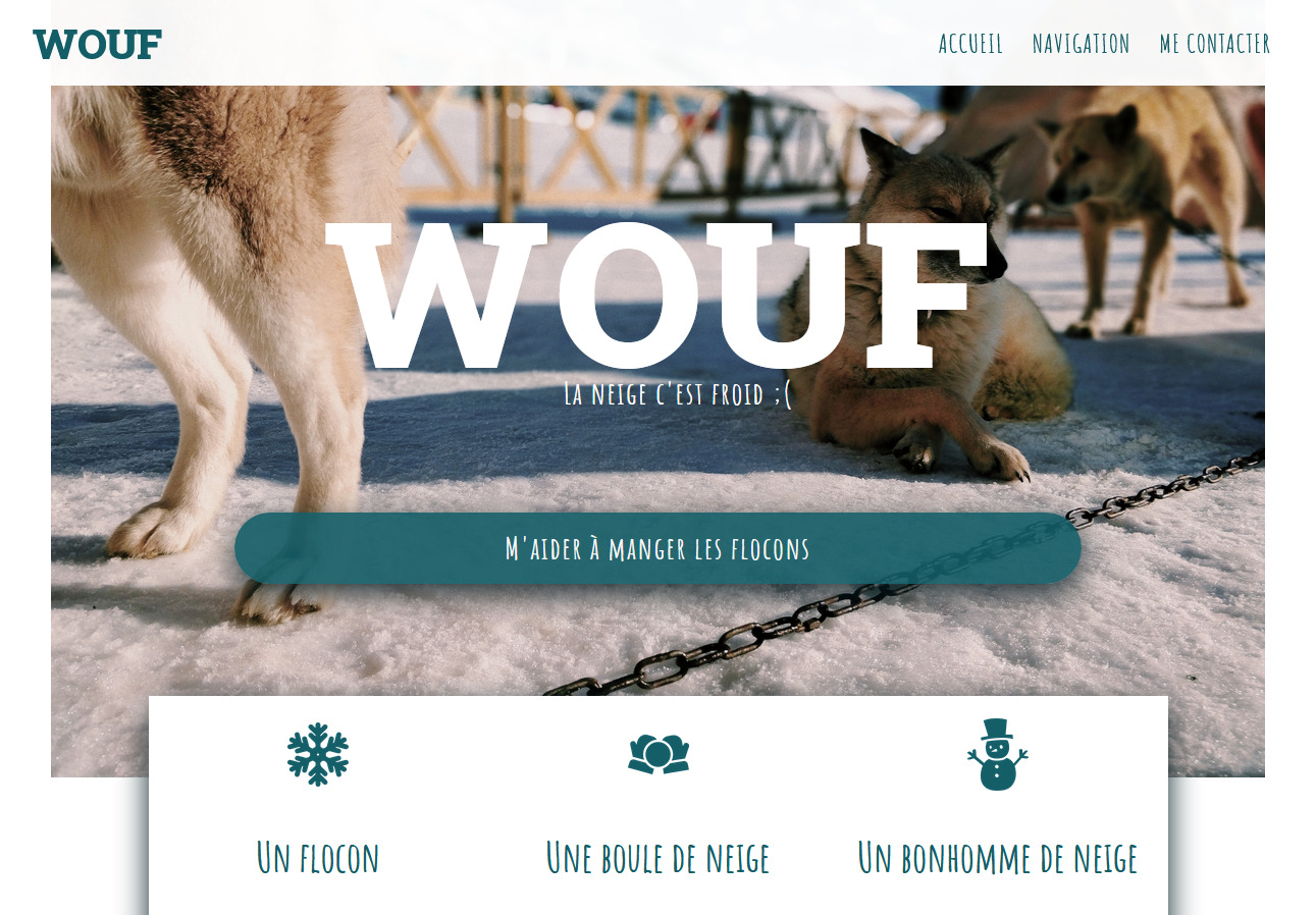 Pour découvrir les fondamentaux du développement web et de la mise en page HTML / CSS, les étudiants ont maquetté une page d'accueil standarde.