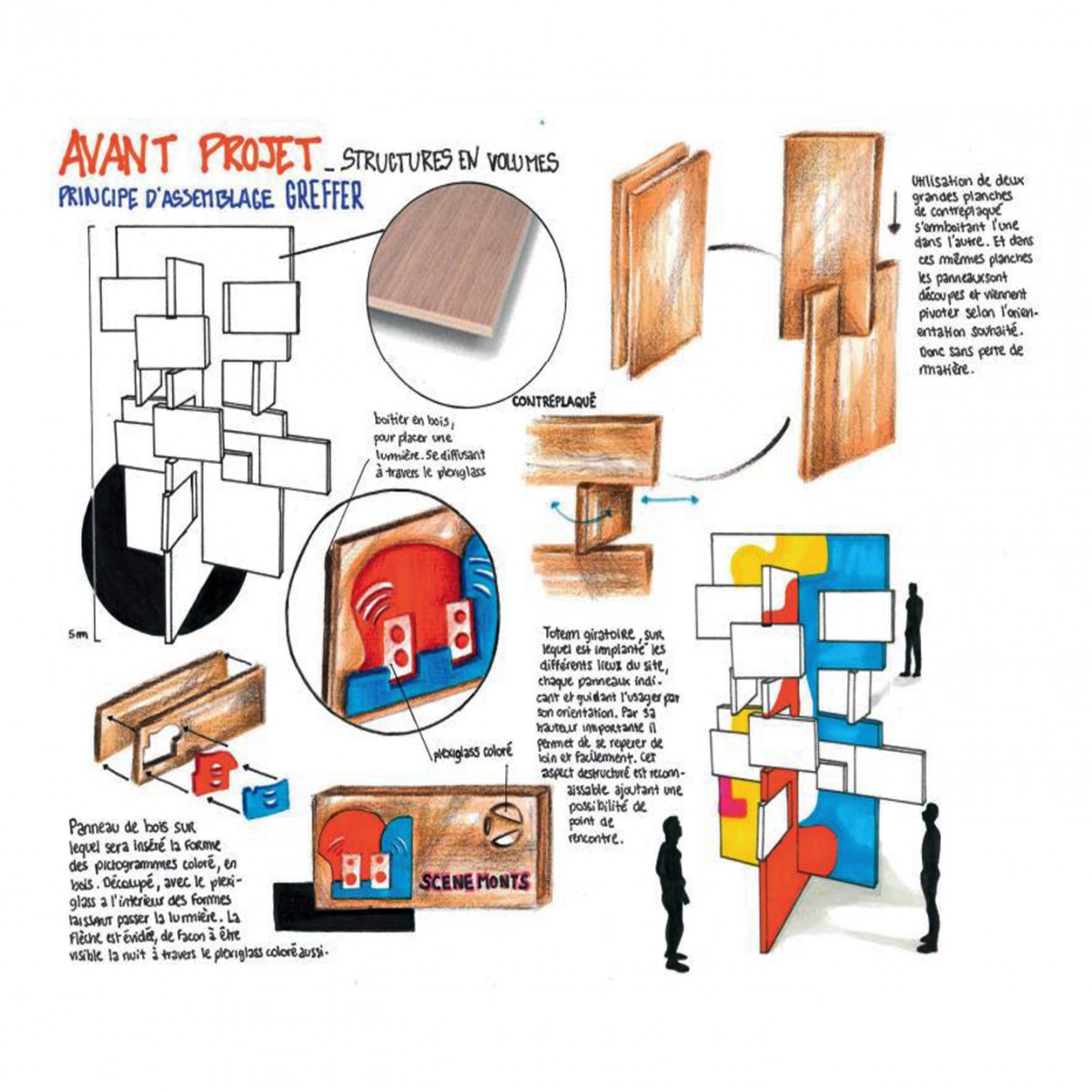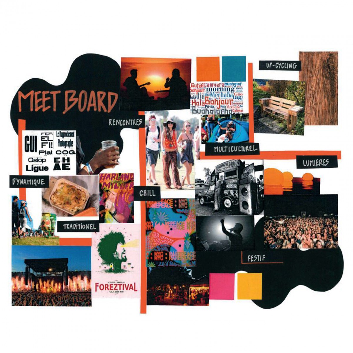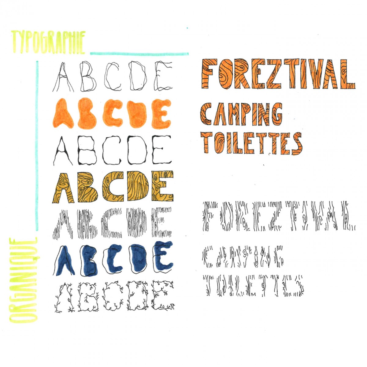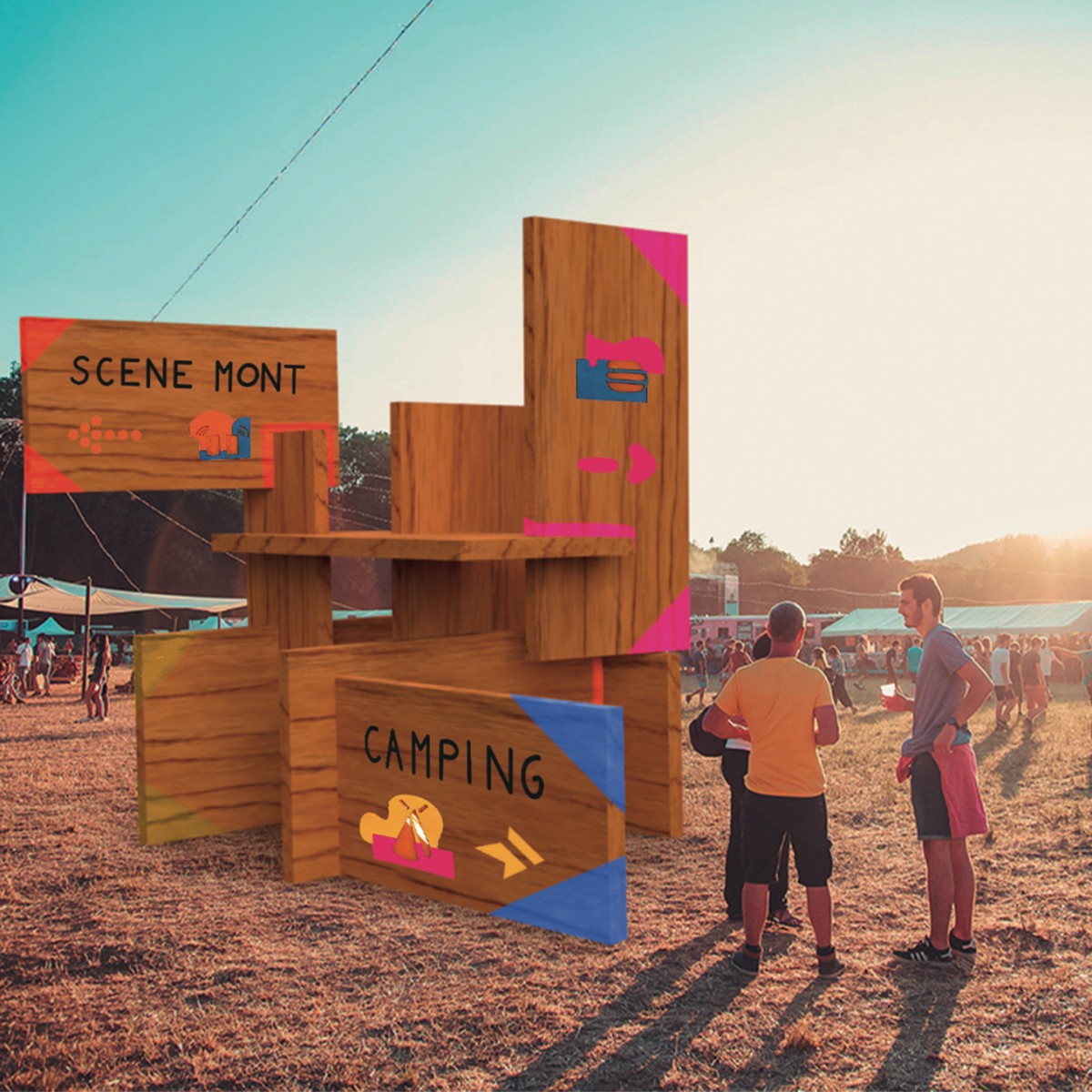 Concevoir une signalétique pérenne et éco-responsable pour répondre à l'appel d'offre du Foreztival. Travail en binôme sur la signalétique à la fois graphique et volumique.