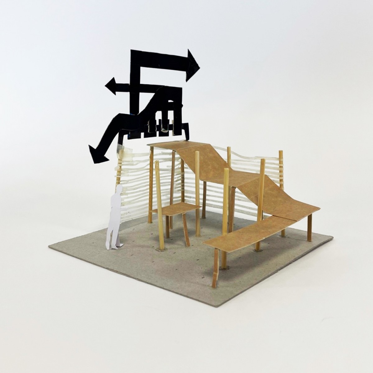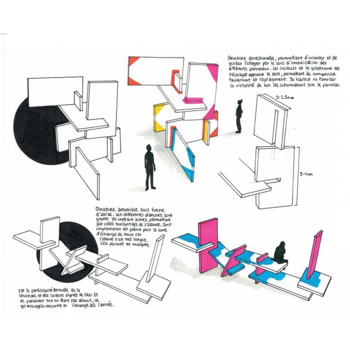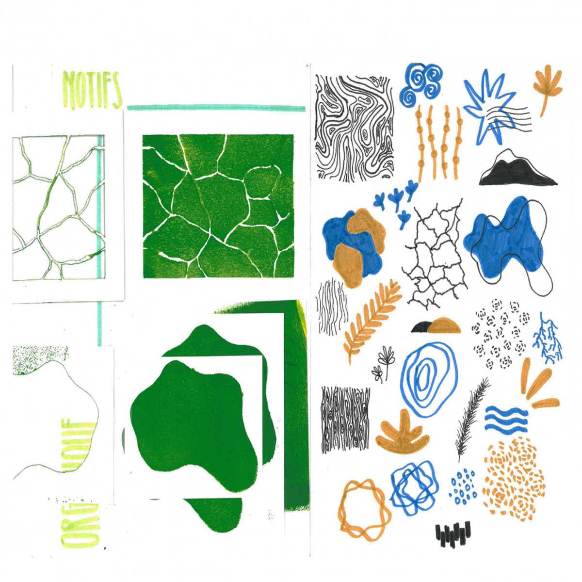 Capacité à intégrer à ses recherches des expérimentations ( matières récupérées, pochoir, tampon, encrage, maquette de principe, tests matériaux ) afin d’aller au delà du simple croquis de recherche (crayon à papier / pro-marker).