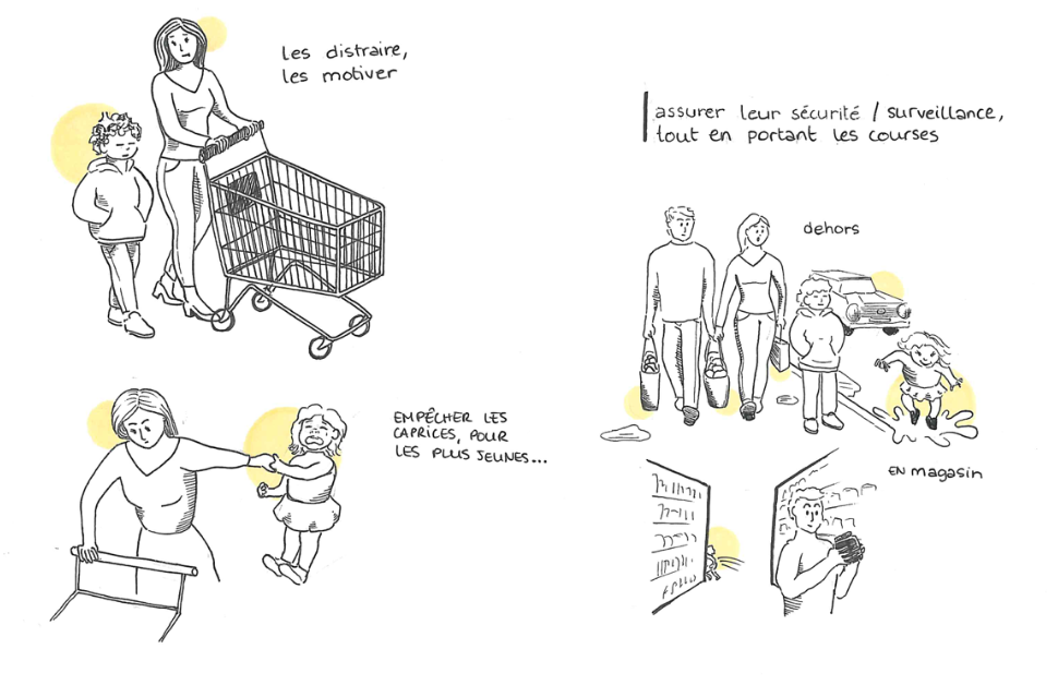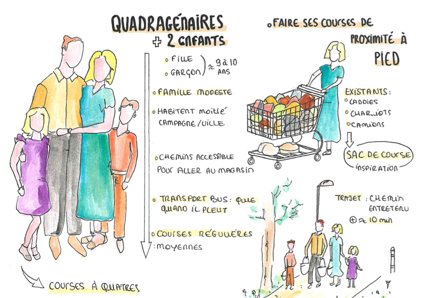 A partir de la phrase « faire ses courses à pied », proposer une interprétation de cette phrase, explorer une ou plusieurs thématiques de travail pour chaque cible, un ou plusieurs concepts présentés sous forme de story board de 3 à 4 vignettes pour les thématiques traitées.