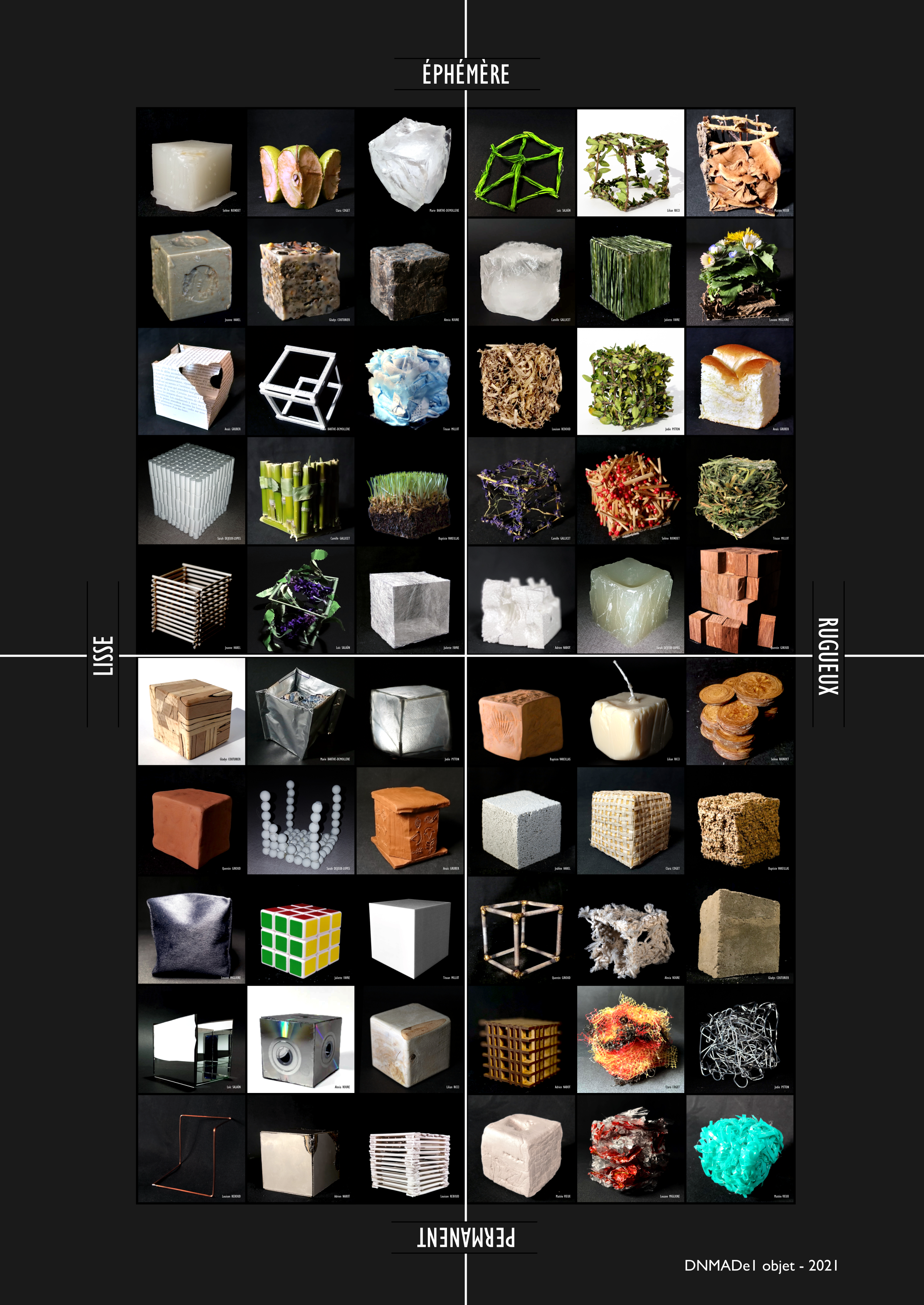 Enrichir les capacités d’observation et le vocabulaire associé à l’identité perçue des matériaux (en lien avec le cours de Culture Design).