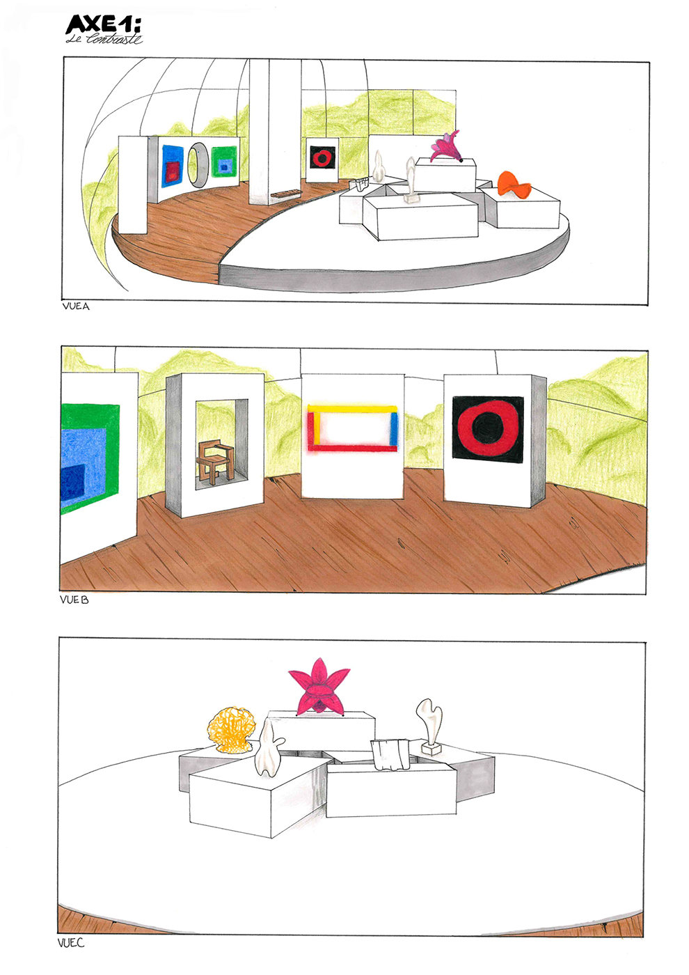 Le minimalisme et l’organique. Sélection d’œuvres afin de les regrouper dans un parcours aux supports adaptés créatifs.
