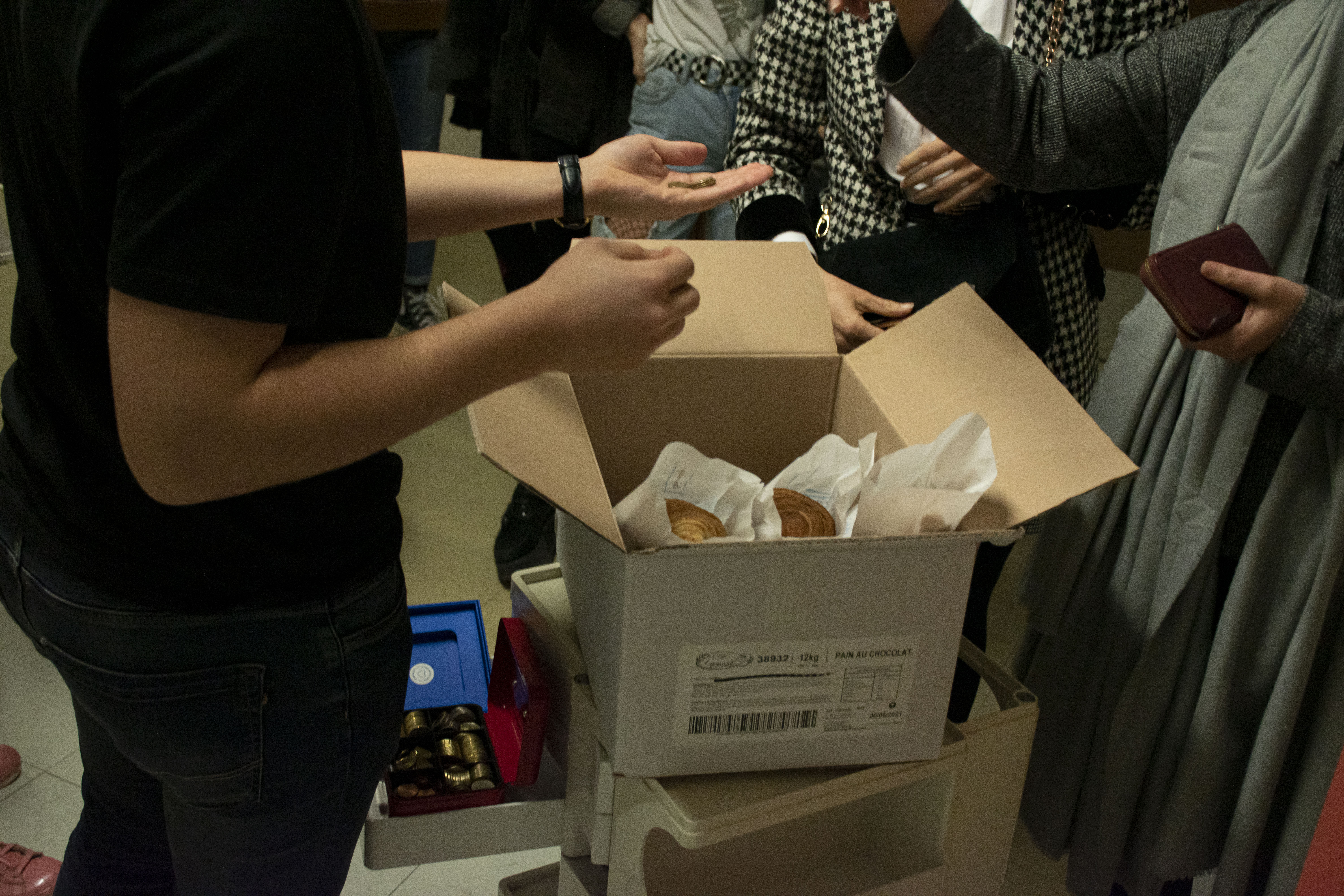 Tous les jours, l'association organise une vente de petits pains (croissants & pains aux chocolat).