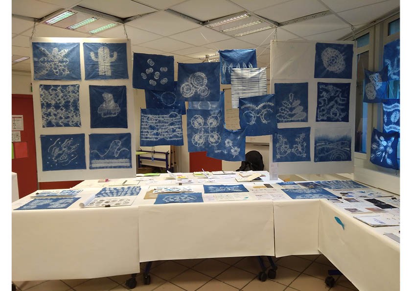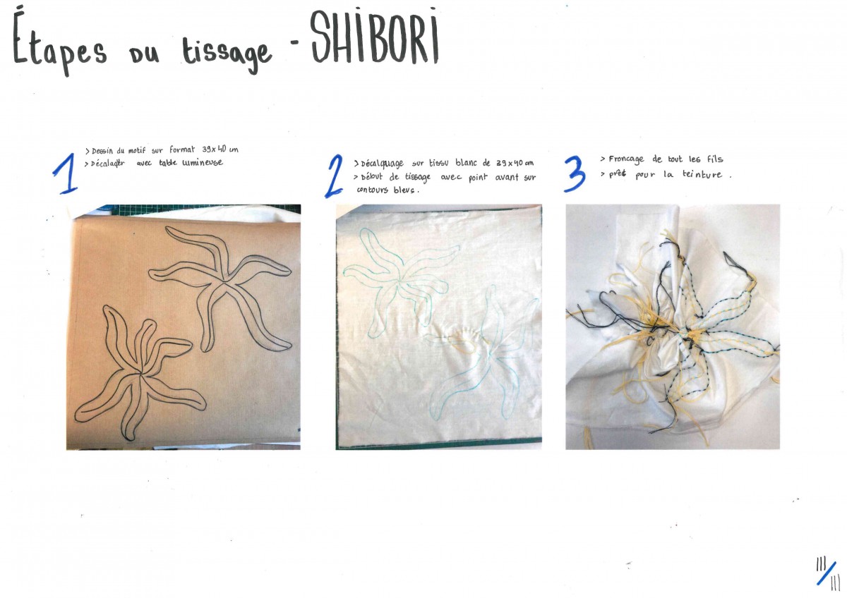 8- réalisation d’un workshop par équipe «comment un textile shibori peut-il être le point de départ à un projets d’arts appliqués».