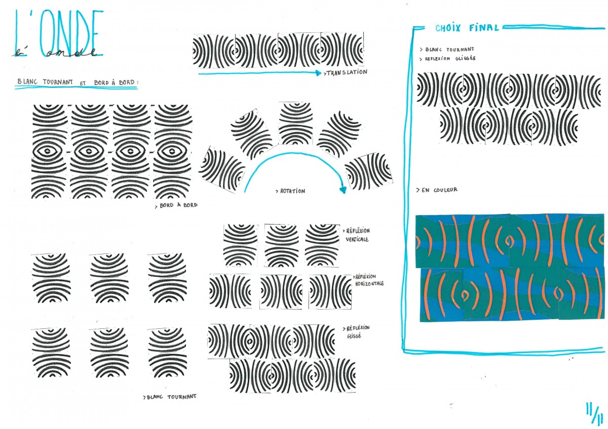 -Cours sur les pavages en Mathématiques en parallèle de la réflexion sur le motif en Pratique d’arts visuels et démarche créative + exercices d’application.