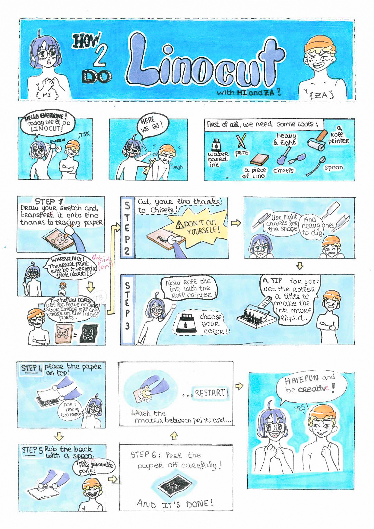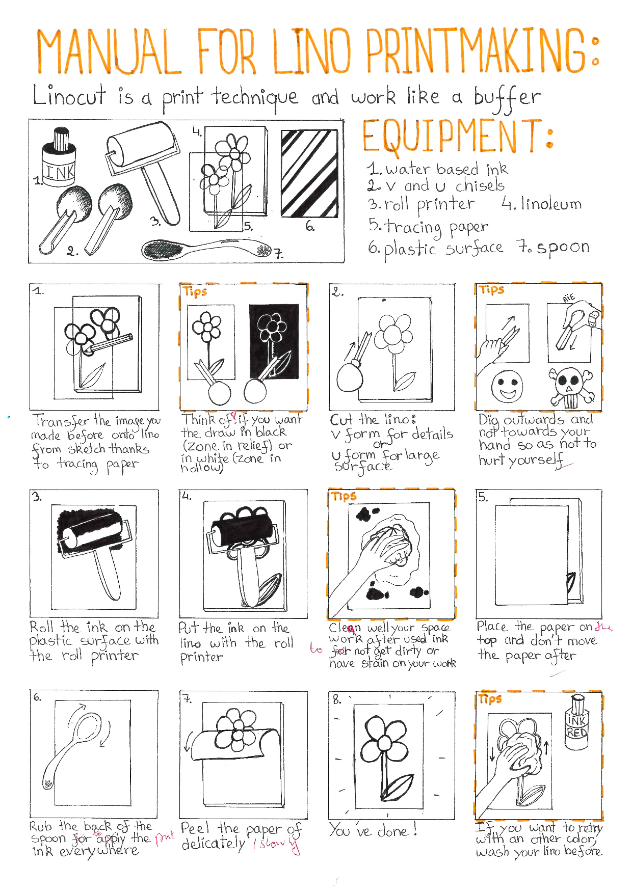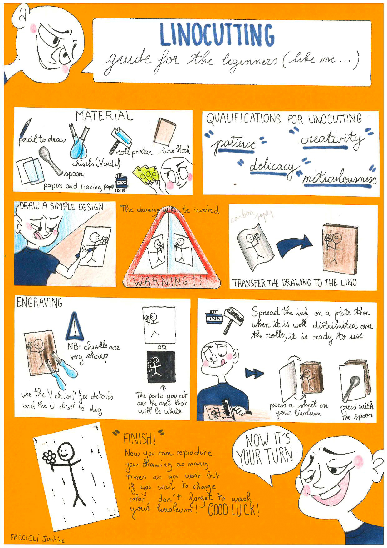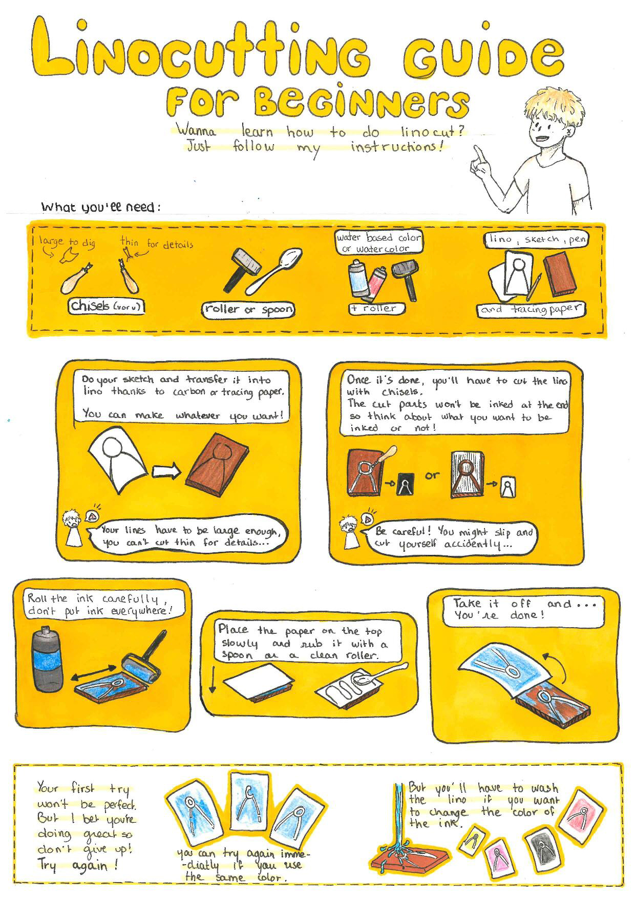 Créer un guide explicatif sur la technique d'impression "linogravure".