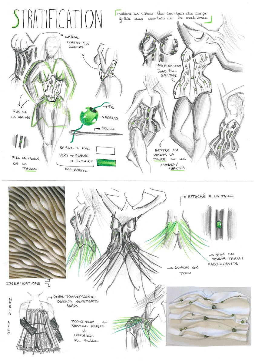 Étape 3 : Associer à une partie du corps > réalisations de 3 planches de recherches de parures.