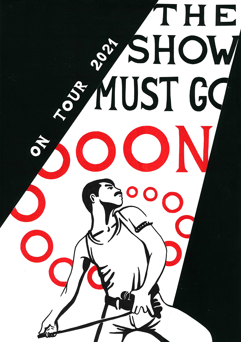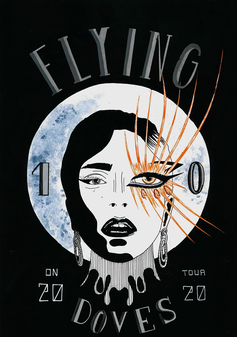 Créer une affiche de tournée 2021 pour un artiste musicien. L'univers graphique de l'affiche refletera le style de l'artiste et sa musique en employant la typographie expressive.
