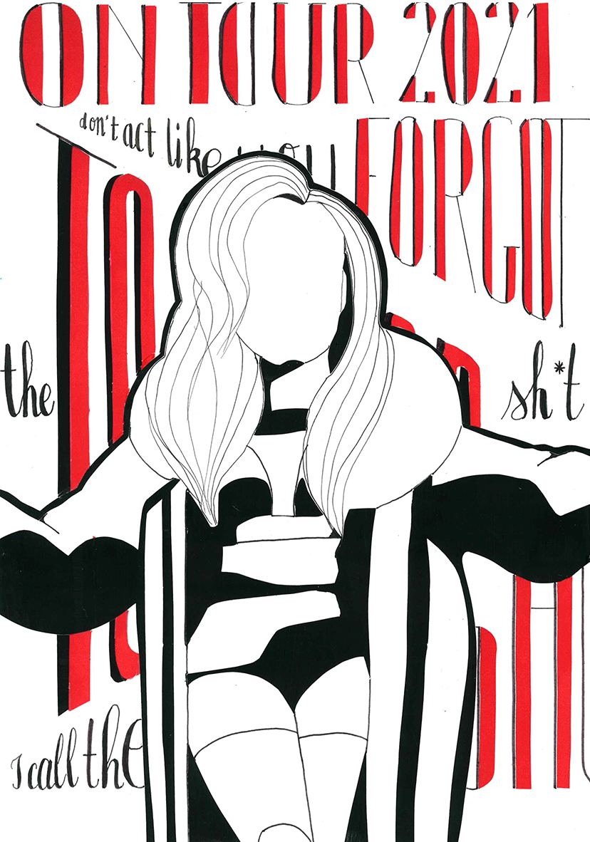 Intégrer la typographie dans l'affiche. Sans utiliser le nom de l'artiste mais ses paroles.
